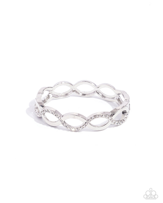Silver bars elegantly intertwine into infinity inspired frames that delicately hinge around the wrist. The...