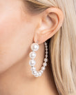 Gradually decreasing in size, glossy white pearls alternate with high-sheen, dainty silver beads for a refined hoop. Earring attaches to a standard post fitting. Hoop measures approximately 2" in diameter.