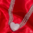 Featuring a metallic, textured checkerboard motif, an oversized silver heart pendant is centered between copious strands of classic silver chains for a dramatically devoted display. Features an adjustable clasp closure.