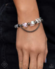 Attached to a gunmetal curb chain, a strand of clear iridescent-like beads and gunmetal discs wrap around the wrist. Larger gunmetal beads alternate with iridescent crystal-like chunks at the center of the design. A dainty strand of classic gunmetal chain and UV-splashed gems create an additional pop of color for a commanding centerpiece. Features an adjustable clasp closure. Due to its prismatic palette, color may vary.
