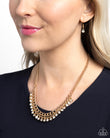 A fringe of glittery rhinestones swings from the bottom of a bold gold chain below the collar for a fierce look. Features an adjustable clasp closure.