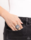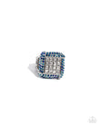 Featuring a collection of faceted white square-cut gems, a thick silver frame embellished with blue multicolored rhinestones glistens atop the finger for a standout, sparkly centerpiece. Features a stretchy band for a flexible fit.
