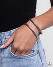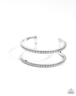 Gritty, antiqued silver studs grace the top and bottom of an airy silver cuff creating a grungy finish to the design.