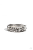 Dusted in sections of dainty hematite, black, and white rhinestones, asymmetrically wavy thick silver bars boldly cross around the wrist in an airy pattern creating a gritty yet glamorous cuff.