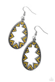 Dotted with dainty mustard seed beads, triangular silver frames jut inside a textured silver teardrop for a tribal-inspired fashion. Earring attaches to a standard fishhook fitting.